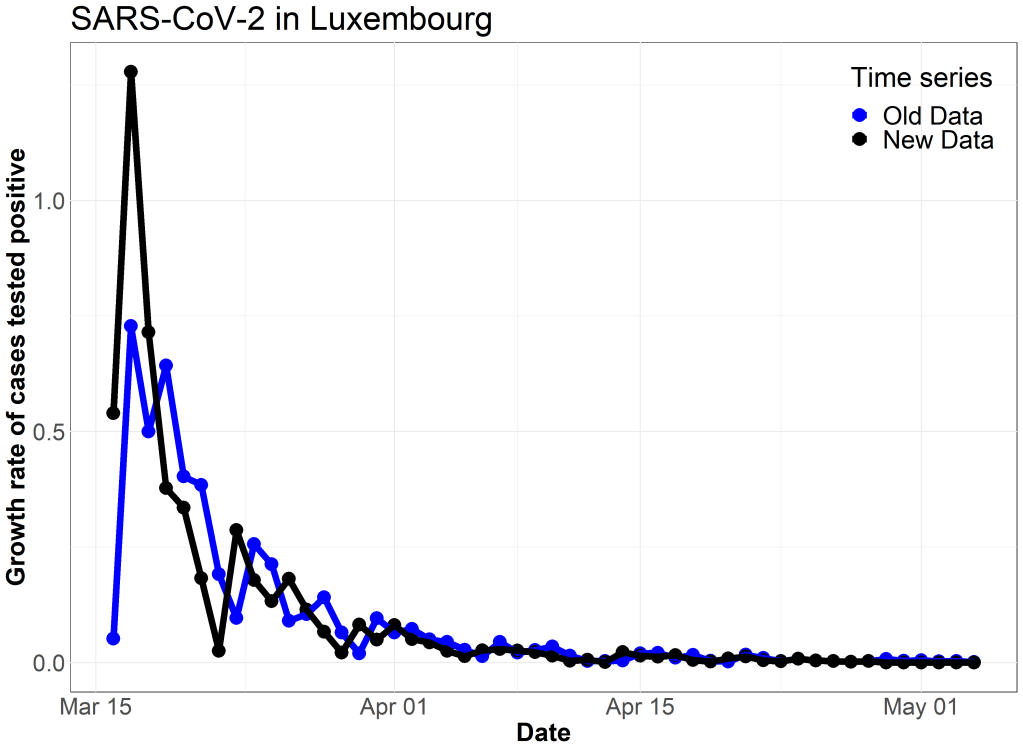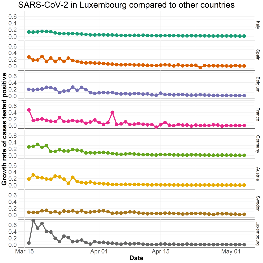 Ce graphique permets de comparer les taux de croissance des cas testés positifs de certains pays européens.
