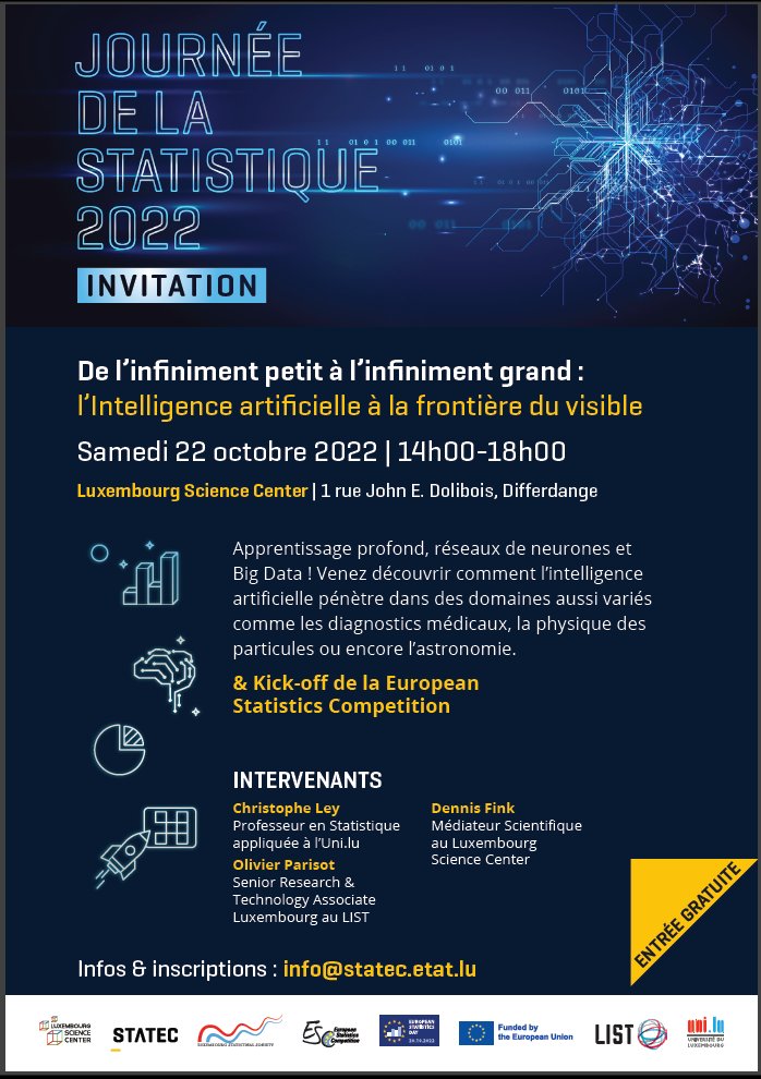 The Luxembourg Statistical Society would like to promote the talks by Stephen Seen and Dr. Holly Jane on “Design and analysis of COVID vaccine trials : the familiar and the strange” organised by the Société Française de Statistique (SFdS). These talks will take place on Friday 3rd December at 5:00 PM and will be hosted online.